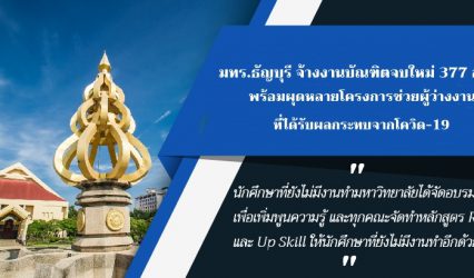 Blogนักศึกษา มทร.ธัญบุรี จ้างงานบัณฑิตจบใหม่ 377 อัตรา พร้อมผุดหลายโครงการช่วยผู้ว่างงานที่ได้รับผลกระทบจากโควิด-19 tui sakrapee July 19, 2020 มทร.ธัญบุรี เร่งหางานให้บัณฑิตจบใหม่ แก้ปัญหาว่างงานยุคโควิด-19 จำนวน 377 อัตรา ระยะเวลา 3 เดือน ๆ ละ 9,000 บาท ด้านโครงการ 1 วิทยาลัย…