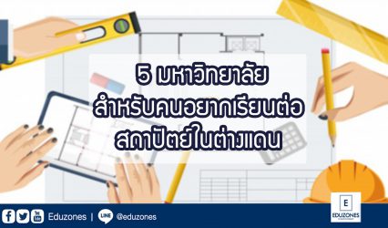 นักศึกษานักเรียน 5 มหาวิทยาลัยสำหรับคนอยากเรียนต่อสถาปัตย์ในต่างแดน EZ Webmaster July 16, 2020 สำหรับน้องๆ ที่สนใจอยากเรียนต่อต่างประเทศด้านสถาปัตยกรรม แต่ยังตัดสินใจไม่ได้ว่าจะเรียนต่อที่คณะสถาปัตยกรรมของมหาวิทยาลัยไหน ประเทศใดดี วันนี้เราทางเว็บไซต์ eduzones ก็มี 5 มหาวิทยาลัยที่มีสาขา/คณะสถาปัตยกรรมที่น่าไปเรียนต่อมากทุกคนกันค่ะ Massachusetts Institute of Technology…