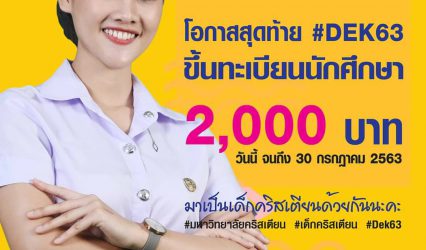ข่าวเด่นนักศึกษา โอกาสสุดท้ายของ #Dek63 ที่กำลังมองหาที่เรียนต่อ ในหลักสูตร สาขาวิชาที่มีคุณภาพ เรียนจบมามีงานรองรับ 100% EZ Webmaster July 8, 2020 มหาวิทยาลัยคริสเตียนมอบโอกาสดีๆ ในเงื่อนไขพิเศษๆ ขึ้นทะเบียนนักศึกษาวันนี้ถึง 30 กรกฎาคม นี้ เพียง 2,000 บาทเท่านั้น ยื่นกู้ กยศ. / กรอ. ได้เลย…