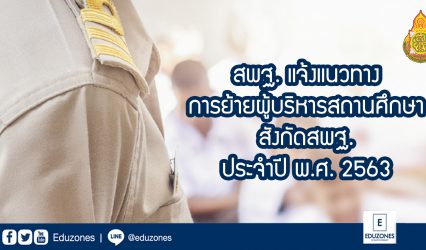 ครู-อาจารย์ สพฐ. แจ้งแนวทางการย้ายผู้บริหารสถานศึกษา สังกัดสพฐ. ประจำปี พ.ศ. 2563 EZ Webmaster July 4, 2020 เมื่อวันที่ 1 กรกฎาคม 2563 ที่ผ่านมา ทางสำนักงานคณะกรรมการการศึกษาขั้นพื้นฐาน (สพฐ.) ได้ส่งหนังสือถึง ศึกษาธิการจังหวัดทุกจังหวัด เรื่อง การย้ายผู้บริหารสถานศึกษา สังกัดสำนักงานคณะกรรมการการศึกษาขั้นพื้นฐาน ประจำปี พ.ศ. 2563…