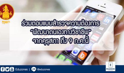 Blogครู-อาจารย์ ร่วมตอบแบบสำรวจความต้องการ “พัฒนาตนเองทางวิชาชีพ” จากคุรุสภา ถึง 9 ก.ค.นี้ EZ Webmaster July 7, 2020 สำนักงานเลขาธิการคุรุสภา เชิญตอบแบบสำรวจความต้องการ ในการพัฒนาตนเองทางวิชาชีพ สำหรับผู้ที่ประกอบอาชีพ ดังนี้ คือ 1.ผู้ประกอบวิชาชีพครู 2.ผู้ประกอบวิชาชีพผู้บริหารสถานศึกษา 3.ผู้ประกอบวิชาชีพผู้บริหารการศึกษา 4.ผู้ประกอบวิชาชีพศึกษานิเทศก์ และอาชีพอื่นๆ โดยสามารถเข้าไปร่วมตอบแบบสอบถาม ได้จนถึงวันที่…