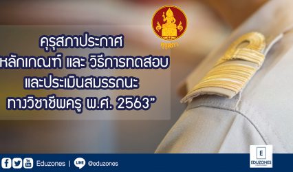 ครู-อาจารย์ คุรุสภาประกาศ “หลักเกณฑ์ และ วิธีการทดสอบและประเมินสมรรถนะทางวิชาชีพครู พ.ศ. 2563” EZ Webmaster July 1, 2020 เมื่อวันที่ 23 มิถุนายน 2563 ที่ผ่านมา ทางสำนักงานคณะกรรมการคุรุสภา ได้มีประกาศคณะกรรมการคุรุสภา เรื่อง หลักเกณฑ์ และ วิธีการทดสอบและประเมินสมรรถนะทางวิชาชีพครู พ.ศ. 2563 โดยประกาศดังกล่าวมีรายละเอียดถึงหลักเกณฑ์ และวิธีการทดสอบและประเมินสมรรถนะทางวิชาชีพของครู…