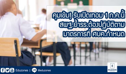 นักเรียนครู-อาจารย์ คุมเข้ม! รับเปิดเทอม 1 ก.ค.นี้ สพฐ.ย้ำรร.ต้องปฏิบัติตามมาตรการที่ ศบค.กำหนด EZ Webmaster June 22, 2020 เลขาธิการคณะกรรมการการศึกษาขั้นพื้นฐาน (เลขาธิการ กพฐ.) นายอำนาจ วิชยานุวัติ กล่าวถึงการเตรียมความพร้อมในการเปิดภาคเรียน ในวันที่ 1 ก.ค.2563 ของโรงเรียนในสังกัดสำนักงานคณะกรรมการการศึกษาขั้นพื้นฐาน(สพฐ.) ว่า ขณะนี้ สพฐ.มีโรงเรียนที่มีความพร้อมสามารถเปิดเรียนที่โรงเรียนได้ ตามมาตรการของศูนย์บริหารสถานการณ์การแพร่ระบาดของโรคติดเชื้อไวรัสโคโรนา…