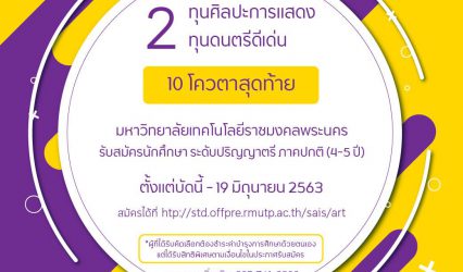 ทุนดีดีนักเรียน มทร.พระนคร รับนักศึกษา TCAS 5 พร้อมอัดฉีดทุนเรียนฟรี ผู้มีความสามารถด้านศิลปะการแสดง -ดนตรี EZ Webmaster June 16, 2020 รศ.สุภัทรา โกไศยกานนท์ รักษาราชการแทนอธิการบดี มหาวิทยาลัยเทคโนโลยีราชมงคลพระนคร เปิดเผยว่า มหาวิทยาลัยกำลังเปิดรับนักศึกษาระดับชั้นมัธยมศึกษาปีที่ 6 เข้าศึกษาต่อระดับปริญญาตรี ระบบทีแคส (TCAS) รอบที่ 5 การรับตรงอิสระ ประจำปีการศึกษา 2563 เป็นรอบสุดท้าย…