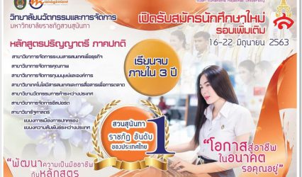 Blogนักเรียน 3ปีก็จบ!วิทยาลัยนวัตกรรมและการจัดการ สวนสุนันทา เปิดรับรอบเพิ่มเติม วันนี้ถึง 22 มิ.ย.63 tui sakrapee June 16, 2020 วิทยาลัยนวัตกรรมและการจัดการ มหาวิทยาลัยราชภัฏสวนสุนันทา รับสมัครนักศึกษาใหม่ ภาคปกติ (รอบเพิ่มเติม) *เรียนจบภายใน3ปี !!!!! เริ่มรับสมัคร 16 – 22 มิ.ย. นี้ สอบถามเพิ่มเติม โทร 02-160-1183…