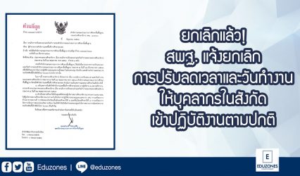 ครู-อาจารย์ ยกเลิกแล้ว! สพฐ. แจ้งยกเลิกการปรับลดเวลาและวันทำงาน ให้บุคลากรในสังกัดเข้าปฏิบัติงานตามปกติ EZ Webmaster June 6, 2020 เมื่อวันที่ 5 มิถุนายน 2563 ที่ผ่านมา ทางสำนักงานคณะกรรมการการศึกษาขั้นพื้นฐาน ได้มีหนังสือแจ้งถึง ผู้อำนวยการสำนักงานเขตพื้นที่การศึกษาทุกเขต เรื่อง ยกเลิกการปรับลดเวลาและวันทำงานของสำนักงานคณะกรรมการการศึกษาขั้นพื้นฐาน ตามที่ทางสำนักงานคณะกรรมการการศึกษาขั้นพื้นฐาน กระทรวงศึกษาธิการ ได้มีประกาศเรื่อง การปรับลดเวลายกเลิกการปรับลดเวลาและวันทำงานของสำนักงานคณะกรรมการการศึกษาขั้นพื้นฐาน…