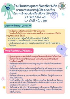 tui sakrapee February 28, 2022 โรงเรียนสวนกุหลาบวิทยาลัย รังสิต แจงแนวปฏิบัติการเข้าสอบ (On site) ห้องเรียนพิเศษ (EP/GEP) tui sakrapee February 28, 2022 โรงเรียนสวนกุหลาบวิทยาลัย รังสิต แจงแนวปฏิบัติการเข้าสอบ (On site) ห้องเรียนพิเศษ (EP/GEP) – ม.1 สอบวันที่ 6 มี.ค. 65 – ม.4 สอบวันที่ 7 มี.ค. 65 และหลักฐานการมอบตัว (Online) ห้องเรียนพิเศษ (EP/GEP) – ม.1 มอบตัววันที่ 9 มี.ค. 65 – ม.4 มอบตัววันที่… Continue Reading