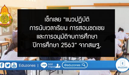 ครู-อาจารย์ เช็กเลย “แนวปฏิบัติ การนับเวลาเรียน การสอนชดเชย และการอนุมัติจบการศึกษา ปีการศึกษา 2563” จากสพฐ. EZ Webmaster May 21, 2020 เมื่อวันที่ 20 พฤษภาคม 2563 ที่ผ่านมา สำนักงานคณะกรรมการการศึกษาขั้นพื้นฐาน (สพฐ.) ส่งหนังสือถึง ผู้อำนวยการสำนักงานเขตพื้นที่การศึกษาทุกเขต เพื่อแจ้งถึงแนวปฏิบัติ การนับเวลาเรียน การสอนชดเชย และการอนุมัติจบการศึกษา ปีการศึกษา 2563…