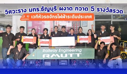 Blogนักศึกษา วิศวะราง มทร.ธัญบุรี ผงาด กวาด 5 รางวัลรวด เวทีหัวรถจักรไฟฟ้าระดับประเทศ tui sakrapee February 20, 2026 ทีม “RAILWAY RMUTT” สร้างความภาคภูมิใจครั้งยิ่งใหญ่ให้กับคณะวิศวกรรมศาสตร์ มหาวิทยาลัยเทคโนโลยีราชมงคลธัญบุรี (มทร.ธัญบุรี) เมื่อทีมนักศึกษาวิศวกรรมระบบราง ภาควิชาวิศวกรรมเครื่องกล สร้างปรากฏการณ์ด้วยการกวาด 5 รางวัลทรงเกียรติจากการแข่งขันออกแบบและสร้างหัวรถจักรไฟฟ้าจำลองระดับอุดมศึกษา “TRRN Railway Challenge 2026” ซึ่งจัดขึ้นอย่างยิ่งใหญ่…