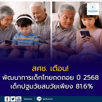 สศช. เตือน พัฒนาการเด็กยุคใหม่ถดถอย เด็กปฐมวัยสมวัยเพียง 81.6% ต่ำกว่าเป้า 85% EZ Webmaster February 27, 2026 สศช. เตือน พัฒนาการเด็กยุคใหม่ถดถอย เด็กปฐมวัยสมวัยเพียง 81.6% ต่ำกว่าเป้า 85% เมื่อวันที่ 23 กุมภาพันธ์ 2569 สำนักงานสภาพัฒนาการเศรษฐกิจและสังคมแห่งชาติ (สศช.) เปิดเผยรายงาน ภาวะสังคมไทย ไตรมาส 4 และภาพรวมปี 2568 โดยหนึ่งในประเด็นที่น่ากังวลคือ “พัฒนาการของเด็กยุคใหม่” ที่มีแนวโน้มถดถอยต่อเนื่อง โดยเฉพาะกลุ่ม Gen Alpha และ Gen Beta ซึ่งเติบโตมาพร้อมกับเทคโนโลยีและโลกดิจิทัลตั้งแต่วัยทารก 📊 เด็กปฐมวัยสมวัยเพียง 81.6% ต่ำกว่าเป้าหมาย ข้อมูลปี 2568 ระบุว่าเด็กปฐมวัยมีพัฒนาการสมวัยเพียง ร้อยละ 81.6ซึ่งยังต่ำกว่าค่าเป้าหมายที่กำหนดไว้ที่ ร้อยละ 85.0 เมื่อพิจารณาเชิงลึกในแต่ละด้าน พบว่าปัญหาที่โดดเด่นที่สุดคือ… Continue Reading