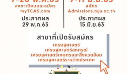 นักเรียน คณะเศรษฐศาสตร์ ม.แม่โจ้ เปิดรับสมัครบุคคลเข้าศึกษาต่อในสถาบันอุดมศึกษา ปีการศึกษา 2563 EZ Webmaster May 5, 2020 คณะเศรษฐศาสตร์ มหาวิทยาลัยแม่โจ้ เปิดรับสมัครบุคคลเข้าศึกษาต่อในสถาบันอุดมศึกษา ปีการศึกษา 2563 • หลักสูตร 4 ปี จำนวน 4 สาขาวิชา 1. เศรษศาสตร์ 2.เศรษศาสตร์เกษตรและสิ่งแว้ดล้อม 3.…