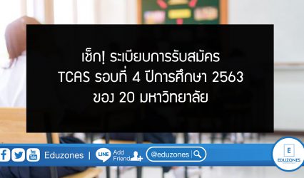 Blogนักเรียน เช็ก! ระเบียบการรับสมัคร TCAS รอบที่ 4 ปีการศึกษา 2563 ของ 20 มหาวิทยาลัย EZ Webmaster May 6, 2020 สำหรับน้องๆ ที่จะสมัคร TCAS รอบที่ 4 (Admission 2) ประจำปีการศึกษา 2563 ที่จะเปิดรับสมัครในวันที่ 7-20 พฤษภาคมนี้ สามารถเข้ามาเช็กระเบียบการรับสมัครของแต่ละคณะ/สาขาวิชาของมหาวิทยาลัยที่ประกาศระเบียบการรับสมัครแล้ว ทั้ง 20…