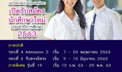 นักเรียน ม.ราชภัฏสวนสุนันทา เปิดรับสมัคร TCAS63 รอบที่ 4 Admission 2 EZ Webmaster May 6, 2020 รอบที่ 4 Admission 2 ระหว่างวันที่ 7 – 20 พฤษภาคม 2563 รายละเอียดการสมัคร www.admission.ssru.ac.th สมัครผ่านระบบTCAS www.student.mytcas.com #สอบถามข้อมูลเพิ่มเติมที่ 021601380