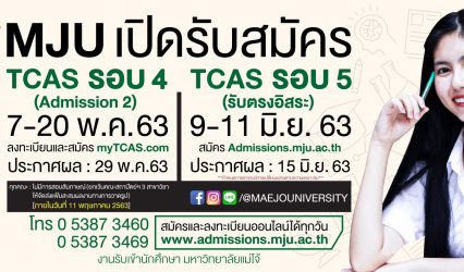 นักเรียน ม.แม่โจ้ เปิดรับสมัครนศ.ใหม่ ปีการศึกษา 2563 EZ Webmaster May 2, 2020 มหาวิทยาลัยแม่โจ้ เปิดรับสมัครบุคคลเข้าศึกษาต่อระบบกลางในสถาบันอุดมศึกษา ปีการศึกษา 2563 • TCAS รอบที่ 4 Admission 2 •สมัคร 7-20 พฤษภาคม 2563 •ระบบสมัคร www.Mytcas.com…