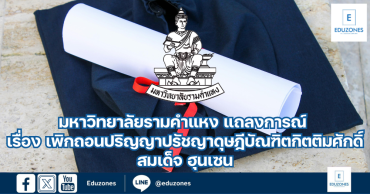 EZ Webmaster August 8, 2025 มหาวิทยาลัยรามคำแหง แถลงการณ์ เรื่อง เพิกถอนปริญญาปรัชญาดุษฎีบัณฑิตกิตติมศักดิ์ สมเด็จ ฮุนเซน EZ Webmaster August 8, 2025 เมื่อเวลา ๑๓.๓๐ น. วันศุกร์ที่ 8 สิงหาคม ๒๕๖๘ ณ ห้องประชุม ๓ ชั้น ๓ ณ อาคารวิทยบริการและบริหาร มหาวิทยาลัยรามคำแหง สภามหาวิทยาลัยรามคำแหง ได้ประชุมสภามหาวิทยาลัยรามคำแหง ครั้งที่ 9/2568 โดยมีวาระสำคัญที่ขอชี้แจงให้สื่อมวลชนได้ทราบทั่วกัน คือ วาระที่ ๕.๑ เรื่อง ข้อเสนอเพิกถอนปริญญาปรัชญาดุษฎีบัณฑิตกิตติมศักดิ์ของสมเด็จ ฮุนเซน โดยที่ประชุมได้อภิปรายและพิจารณาอย่างรอบด้านแล้ว มีมติให้เพิกถอนปริญญาปรัชญาดุษฎีบัณฑิตกิตติมศักดิ์ สาขาวิชารัฐศาสตร์ ของสมเด็จ ฮุนเซน ด้วยเหตุผลดังนี้… Continue Reading