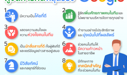 ข่าวเด่น 10 พฤติกรรมที่ผู้จัดการที่ดีที่สุดของ Google EZ Webmaster April 28, 2020 1.มีความเป็นโค้ชที่ดี 2.รู้จักเพิ่มศักยภาพคนในทีมและไม่พยายามบริหารจัดการทุกอย่าง 3.แสดงความสนใจและความห่วงใยคนในทีม ทั้งเรื่องความเสร็จ เรื่องส่วนตัว ความเป็นอยู่ 4.ทำงานอย่างมีประสิทธิภาพและมุ่งเน้นไปที่ผลลัพธ์ 5.เป็นนักสื่อสารที่ดี ทั้งผู้ฟังที่ดีและแชร์ข้อมูลข่าวสารอยู่เสมอ 6.ช่วยคนในทีมให้มีความก้าวหน้าในสายอาชีพ 7.มีวิสัยทัศน์และกลยุทธ์ที่ชัดเจน 8.มีทักษะทางเทคนิคสำคัญที่จะช่วยคนในทีม 9.มีการสร้างความร่วมมือนอกเหนือจากในบริษัท 10.มีความกล้าตัดสินใจอย่างเด็ดเดี่ยว