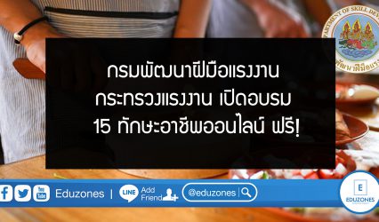 Blog กรมพัฒนาฝีมือแรงงาน กระทรวงแรงงาน เปิดอบรม 15 ทักษะอาชีพออนไลน์ ฟรี! EZ Webmaster April 26, 2020 กรมพัฒนาฝีมือแรงงาน กระทรวงแรงงาน เปิดให้เรียนนักเรียน นักศึกษา ประชาชนผู้ที่สนใจฝึกอาชีพ ลงทะเบียนเรียนออนไลน์ เพื่อฝึก 15 ทักษะอาชีพผ่านวิดิทัศน์บนเว็บไซต์ของ กรมพัฒนาฝีมือแรงงาน กับวิทยากร/ผู้เชี่ยวชาญของแต่ละทักษะอาชีพ ได้ฟรีโดยไม่มีค่าใช้จ่าย โดย 15 อาชีพที่เปิดอบรมมีดังต่อไปนี้ …