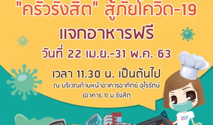 กิจกรรม ม.รังสิต เปิด “ครัวรังสิต เพื่อประชาชน… รวมใจสู้ภัย COVID-19” EZ Webmaster April 24, 2020 มหาวิทยาลัยรังสิต จัดตั้ง “ครัวรังสิต สู้ภัย COVID-19” เพื่อทำอาหารแจกให้แก่นักศึกษา และบุคคลทั่วไปที่ได้รับผลกระทบจาก COVID-19 เพื่อเป็นส่วนหนึ่งในการแบ่งเบาความทุกข์ของประชาชน และร่วมสร้างสังคมแห่งการให้และการแบ่งปัน โดยขอความร่วมมือทุกท่านที่เข้ามารับอาหารปฏิบัติตามขั้นตอนต่างๆ ตามมาตรการคัดกรองและป้องกันของมหาวิทยาลัย และใส่หน้ากากอนามัย เริ่มตั้งแต่วันที่ 22 เมษายน – วันที่ 31 พฤษภาคม 2563 ณ บริเวณด้านหน้าอาคารอาทิตย์ อุไรรัตน์ (อาคาร 1)…