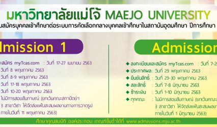 นักเรียน มหาวิทยาลัยแม่โจ้ เปิดรับสมัครบุคคลเข้าศึกษาต่อระบบกลางในสถาบันอุดมศึกษา ปีการศึกษา 2563 EZ Webmaster April 18, 2020 • TCAS รอบที่ 3 Admissions 1 สมัคร 17-27 เมษายน 2563 ระบบสมัคร www.Mytcas.com • TCAS รอบที่ 4…