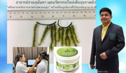Blogครู-อาจารย์ อาจารย์สวนสุนันทา ผุดนวัตกรรมใหม่เพื่อสุขภาพผิว “ครีมสารสกัดจากสาหร่ายพวงองุ่น” คว้าเหรียญเงินเวทีวิจัยระดับนานาชาติ tui sakrapee April 17, 2020 อาจารย์นรินทร์ กากะทุม หัวหน้าสาขาวิชาการแพทย์แผนไทยประยุกต์ วิทยาลัยสหเวชศาสตร์ มหาวิทยาลัยราชภัฏสวนสุนันทา คว้ารางวัลเหรียญเงิน จากผลงานวิจัย ครีมสารสกัดสาหร่ายพวงองุ่น (Emerald Sleeping mask form Caulerpa Lentillifera) ซึ่งผลงานดังกล่าวเข้าประกวดและนำเสนอนวัตกรรมสิ่งประดิษฐ์งานวิจัยบนเวทีระดับนานาชาติในงาน 23rd…