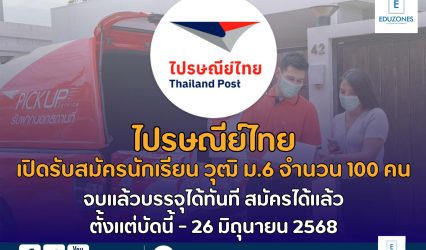 นักศึกษานักเรียน ไปรษณีย์ไทย เปิดรับสมัครนักเรียน วุฒิ ม.6 จำนวน 100 คน จบแล้วบรรจุได้ทันที สมัครได้แล้วตั้งแต่บัดนี้ – 26 มิถุนายน 2568 EZ Webmaster June 2, 2025 ไปรษณีย์ไทยได้ประกาศรับสมัครบุคคลเพื่อเข้าศึกษาหลักสูตรโรงเรียนการไปรษณีย์ รุ่นที่ 79 ประจำปีการศึกษา 2568 ด้วยบริษัท ไปรษณีย์ไทย จำกัด รัฐวิสาหกิจในสังกัดกระทรวงดิจิทัลเพื่อเศรษฐกิจและสังคม มีความประสงค์จะรับสมัครบุคคลเพื่อเข้าศึกษาหลักสูตรโรงเรียนการไปรษณีย์ รุ่นที่ 79 ประจำปีการศึกษา 2568 ระยะเวลาการศึกษา 1…