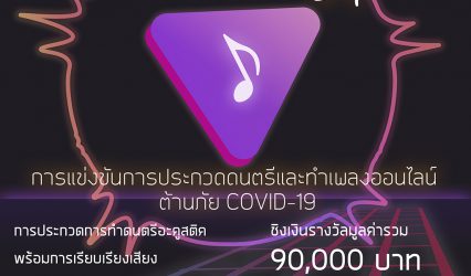 กิจกรรม ว.วิศวกรรมสังคีต สจล. ชวนประกวดทำเพลงออนไลน์ ห่างไกลโควิด-19 EZ Webmaster April 16, 2020 วิทยาลัยวิศวกรรมสังคีต สถาบันเทคโนโลยีพระจอมเกล้าเจ้าคุณทหารลาดกระบัง (สจล.) เชิญชวนเยาวชนอายุตั้งแต่ 13-18 ปี ที่มีใจรักดนตรี เข้าร่วมประกวดทำเพลงออนไลน์ ในโครงการ “Futuristic Music Contest” ทั้งประเภทศิลปินเดี่ยว และประเภทวงดนตรี ภายใต้แนวคิดการสร้างสรรค์ดนตรีด้วยเทคโนโลยีไร้พรหมแดน ห่างไกลโควิด-19 โดยผู้เข้าร่วมประกวดจะต้องส่งคลิปวีดีโอ ที่ทำดนตรีแนวอะคูสติคแบบครบวงจร ตั้งแต่การเล่นดนตรี การเรียบเรียงดนตรี…