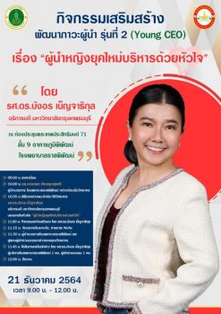 tui sakrapee December 20, 2021 อธิการบดี มหาวิทยาลัยกรุงเทพธนบุรี บรรยาย “ผู้หญิงยุคใหม่ บริหารด้วยหัวใจ” พัฒนาภาวะผู้นำ tui sakrapee December 20, 2021 โรงพยาบาลราชพิพัฒน์ ได้เรียนเชิญท่านอธิการบดี มหาวิทยาลัยกรุงเทพธนบุรี รศ.ดร.บังอร เบ็ญจาธิกุล เป็นวิทยากร บรรยายพิเศษ ในหัวข้อ “ผู้หญิงยุคใหม่ บริหารด้วยหัวใจ” ให้แก่ผู้บริหารของโรงพยาบาล ที่เข้าร่วมอบรม ในหลักสูตร การพัฒนาภาวะผู้นำ รุ่นที่ 2 (Young CEO) ในวันอังคารที่ 21 ธันวาคม 2564 เวลา 9.00-12.00 น. ณ ห้องประชุม ชั้น 9 อาคารภูมิพิพัฒน์ ทั้งนี้ผู้อำนวยการโรงพยาบาลและทีมผู้บริหารเตรียมให้การต้อนรับอย่างอบอุ่น… Continue Reading