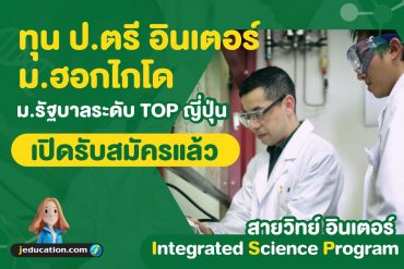 ทุนเรียนต่อปริญญาตรี อินเตอร์ ที่ญี่ปุ่น หลักสูตรสายวิทย์ หมดเขต 30 พฤศจิกายน 2021 EZ Webmaster November 23, 2021 ทุนเรียนต่อปริญญาตรี อินเตอร์ ที่ญี่ปุ่น หลักสูตรสายวิทย์ Integrated Science Program (ISP) จากมหาวิทยาลัยฮอกไกโด มอบทุนสนับสนุนค่าเล่าเรียนสูงสุด 100% พร้อมค่าครองชีพรายเดือน เปิดรับสมัครแล้ว หมดเขต 30 พฤศจิกายน 2021 มหาวิทยาลัยฮอกไกโด มหาวิทยาลัยรัฐบาลขนาดใหญ่ ระดับ TOP 10 ของญี่ปุ่น จังหวัดฮอกไกโด เปิดรับสมัครนักศึกษาต่างชาติ พร้อมมอบทุนการศึกษา เพื่อเข้าเรียนในหลักสูตร Integrated Science Program (ISP) หลักสูตรอินเตอร์สำหรับสายวิทย์ ระดับปริญญาตรี ภาพรวมหลักสูตร Integrated Science Program (ISP) เป็นหลักสูตรภาคอินเตอร์ โดยนักเรียนจะได้เรียนองค์ความรู้ด้านวิทยาศาสตร์ที่เปิดกว้าง, เรียนพื้นฐานด้านวิทยาศาสตร์ที่สนใจอย่างละเอียดและครอบคลุมจนเชี่ยวชาญ ทำให้สามารถเจาะลึกต่อไปในสาขาวิชาใดวิชาหนึ่งที่ตนเองสนใจศึกษาได้… Continue Reading