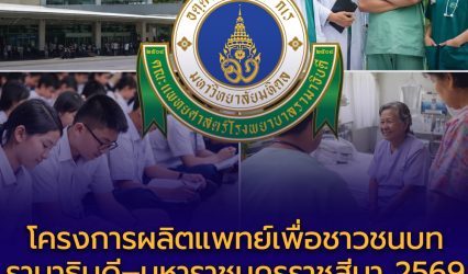 โครงการผลิตแพทย์เพื่อชาวชนบท รามาธิบดี–มหาราชนครราชสีมา ปี 2569 รับ 52 คน EZ Webmaster March 9, 2026 โครงการผลิตแพทย์เพื่อชาวชนบท รามาธิบดี–มหาราชนครราชสีมา ปี 2569 รับ 52 คน สมัคร 20 มี.ค. – 8 เม.ย. คณะแพทยศาสตร์โรงพยาบาลรามาธิบดี มหาวิทยาลัยมหิดล ร่วมกับ โรงพยาบาลมหาราชนครราชสีมา เปิดรับสมัครนักเรียนเข้าศึกษาใน หลักสูตรแพทยศาสตรบัณฑิต โครงการผลิตแพทย์เพื่อชาวชนบท ประจำปีการศึกษา 2569 เพื่อผลิตแพทย์ที่มีความรู้ความสามารถและกลับไปพัฒนาระบบสาธารณสุขในภูมิภาค โครงการดังกล่าวมุ่งเน้นการเปิดโอกาสให้นักเรียนในพื้นที่ต่างจังหวัด โดยเฉพาะภาคตะวันออกเฉียงเหนือ ได้มีโอกาสเข้าศึกษาแพทยศาสตร์ และกลับไปปฏิบัติงานในพื้นที่บ้านเกิดเพื่อลดความเหลื่อมล้ำด้านการเข้าถึงบริการสาธารณสุข ระยะเวลาการรับสมัคร 📌 รับสมัคร: 20 มีนาคม – 8 เมษายน 2569 📌 จำนวนรับทั้งหมด: 52 คน แบ่งตามจังหวัดดังนี้ จังหวัดนครราชสีมารับ… Continue Reading