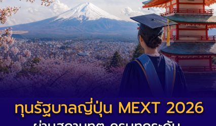 Blogทุนดีดีนักศึกษา ทุนรัฐบาลญี่ปุ่น MEXT 2026 ผ่านสถานทูต ครบทุกระดับ เรียนฟรี + มีเงินเดือน EZ Webmaster April 23, 2026 🇯🇵 เปิดสมัครแล้ว! ทุนรัฐบาลญี่ปุ่น MEXT 2026 ผ่านสถานทูต ครบทุกระดับ เรียนฟรี + มีเงินเดือน ข่าวดีสำหรับนักเรียนไทยที่วางแผนเรียนต่อประเทศญี่ปุ่น ล่าสุด กระทรวงศึกษาธิการ วัฒนธรรม กีฬา วิทยาศาสตร์…