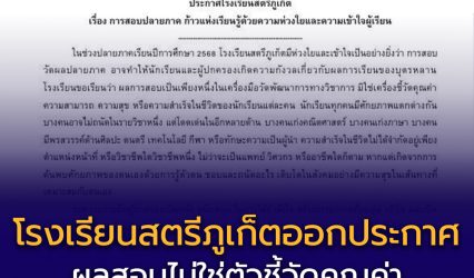 Blogครู-อาจารย์นักเรียน โรงเรียนสตรีภูเก็ตออกประกาศย้ำ “ผลสอบไม่ใช่ตัวชี้วัดคุณค่าของชีวิต” ส่งกำลังใจนักเรียนช่วงปลายภาค EZ Webmaster February 19, 2026 โรงเรียนสตรีภูเก็ตออกประกาศย้ำ “ผลสอบไม่ใช่ตัวชี้วัดคุณค่าของชีวิต” ส่งกำลังใจนักเรียนช่วงปลายภาค เมื่อวันที่ 18 กุมภาพันธ์ โรงเรียนสตรีภูเก็ตได้เผยแพร่ประกาศถึงนักเรียนและผู้ปกครอง เน้นย้ำว่า “ผลการสอบเป็นเพียงหนึ่งในเครื่องมือวัดพัฒนาการทางวิชาการ มิใช่เครื่องชี้วัดคุณค่า ความสามารถ ความสุข หรือความสำเร็จในชีวิตของนักเรียนแต่ละคน” ประกาศดังกล่าวเกิดขึ้นในช่วงใกล้สิ้นภาคเรียน ปีการศึกษา 2568…