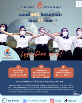 มทร.ธัญบุรี รวมใจ แปรธงชาติไทยผืนใหญ่ที่สุด ส่งพลังใจถึงรั้วของชาติ หลังสถานการณ์ชายแดนยืดเยื้อ tui sakrapeeDecember 24, 2025 มหาวิทยาลัยเทคโนโลยีราชมงคลธัญบุรี จัดกิจกรรมแสดงพลังความรักชาติครั้งสำคัญผ่านการแปรผืนผ้าธงชาติไทยขนาดใหญ่ที่สุด พร้อมพิธีสดุดีและยืนสงบนิ่งเพื่อรำลึกถึงความเสียสละของทหารไทย ณ ลานอนันต์รังสรรค์ มทร.ธัญบุรี ในช่วงเย็นวันอังคารที่ 23 ธันวาคม 2568 รศ.ดร.สมหมาย ผิวสอาด อธิการบดีมหาวิทยาลัยเทคโนโลยีราชมงคลธัญบุรี (มทร.ธัญบุรี) เปิดเผยว่าทางมหาวิทยาลัยจัดกิจกรรม ราชมงคลธัญบุรี ส่งกำลังใจ ถึงทหารไทยผู้กล้า… คณะศึกษาศาสตร์ ม.ศิลปากร ผนึกกำลังชุมชน จัดโครงการ “1 ภาควิชา 1 ชุมชน” เชิดชูอัตลักษณ์พระปฐมเจดีย์ สู่เมืองแห่งการเรียนรู้ที่ยั่งยืน EZ WebmasterDecember 22, 2025 คณะศึกษาศาสตร์ ม.ศิลปากร ผนึกกำลังชุมชน จัดโครงการ “1 ภาควิชา 1 ชุมชน” เชิดชูอัตลักษณ์พระปฐมเจดีย์ สู่เมืองแห่งการเรียนรู้ที่ยั่งยืน เมื่อวันเสาร์ที่ 20 ธันวาคม 2568 คณะศึกษาศาสตร์ มหาวิทยาลัยศิลปากร จัดโครงการ… สวนสุนันทาเปิดเวที HIDA รุ่นที่ 5 รวมแพทย์ผู้เชี่ยวชาญถ่ายทอดความรู้ “โรคใกล้ตัว” ชี้แนวทางดูแลตนเอง ลดเสี่ยงโรคเรื้อรังคนไทย tui sakrapeeDecember 19, 2025 📰 ราชภัฏสวนสุนันทาเปิดเวที HIDA รุ่นที่ 5 รวมแพทย์ผู้เชี่ยวชาญถ่ายทอดความรู้ “โรคใกล้ตัว” ชี้แนวทางดูแลตนเอง ลดเสี่ยงโรคเรื้อรังคนไทย เมื่อวันพฤหัสบดีที่ 18 ธันวาคม 2568 ณ โรงแรมชาเทรียม ริเวอร์ไซด์ กรุงเทพฯหลักสูตรผู้บริหารระดับสูงด้านการพัฒนาคุณภาพบริการสุขภาพและความงาม (HIDA)… มหาวิทยาลัยกรุงเทพ จัดงาน “BU Game On! Expo x Job Fair for Game Industry 2025” เวทีพิสูจน์ฝีมือนักพัฒนาเกมรุ่นใหม่ tui sakrapeeDecember 18, 2025 มหาวิทยาลัยกรุงเทพ จัดงาน “BU Game On! Expo x Job Fair for Game Industry 2025″ เวทีพิสูจน์ฝีมือนักพัฒนาเกมรุ่นใหม่ เชื่อมโลกการศึกษาสู่อุตสาหกรรมจริง มหาวิทยาลัยกรุงเทพ จัดงาน… Search for: Search Classic Blog วางแผนดีมีที่เรียน! โลจิสติกส์ สวนสุนันทา รอบที่ 1 Portfolio รับ 520 คน รอบที่ 2 Quota รับ 47 คนเท่านั้น tui sakrapee November 15, 2021 วิทยาลัยโลจิสติกส์และซัพพลายเชน มหาวิทยาลัยราชภัฏสวนสุนันทา เปิดรับสมัครนักศึกษาใหม่ ปีการศึกษา 2565 รอบที่ 1 Portfolio รวม 520 คน รอบที่ 2 โควตา รวม 47 คน หลักสูตรที่เปิดรับ ระดับปริญญาตรี รอบที่ 1 Portfolio หลักสูตรบริหารธุรกิจบัณฑิต รหัสสาขาวิชา 7321 การจัดการโลจิสติกส์ จำนวนรับ 128 คน GPAX 4-5 ภาคเรียนขึ้นไป ≥ 2.00 รหัสสาขาวิชา 7339 การจัดการซัพพลายเชนธุรกิจ (ธุรกิจพาณิชยนาวี) จำนวนรับ 160 คน GPAX 4-5 ภาคเรียนขึ้นไป ≥ 2.00 รหัสสาขาวิชา 7342 การจัดการซัพพลายเชนธุรกิจ (การจัดการการขนส่ง) จำนวนรับ 64 คน GPAX 4-5… Continue Reading นิเทศฯ ม.รังสิต ชวนน้อง ม.ปลาย ร่วมโคร