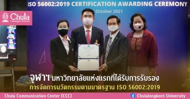 tui sakrapee November 1, 2021 จุฬาฯ มหาวิทยาลัยแห่งแรกที่ได้รับการรับรอง การจัดการนวัตกรรมตามมาตรฐาน ISO 56002:2019 tui sakrapee November 1, 2021 จุฬาลงกรณ์มหาวิทยาลัยได้รับการรับรองด้านการบริหารจัดการนวัตกรรมที่เป็นไปตามมาตรฐาน ISO 56002:2019 จากสถาบันรับรองมาตรฐานไอเอสโอ (Management System Certification Institute – MASCI) ซึ่งเป็นผลจากการประเมินระบบการจัดการนวัตกรรมของสถาบันนวัตกรรมบูรณาการแห่งจุฬาลงกรณ์มหาวิทยาลัย (Chulalongkorn School of Integrated Innovation: ScII) นับเป็นหลักสูตรของสถาบันอุดมศึกษาแห่งแรกในประเทศไทยและน่าจะเป็นแห่งแรกในภูมิภาคเอเชียที่ได้รับการรับรองมาตรฐานดังกล่าว มาตรฐาน ISO 56002: 2019 จัดตั้งขึ้นโดยองค์การ ISO (the International Organization for Standardization) เมื่อเดือนกรกฎาคม 2562 เพื่อสนับสนุนให้มีมาตรฐานการจัดการระบบนวัตกรรม… Continue Reading