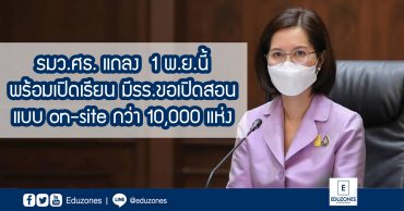 รมว.ศธ. แถลง 1 พ.ย.นี้ พร้อมเปิดเรียน มีรร.ขอเปิดสอนแบบ on-site กว่า 10,000 แห่ง EZ Webmaster October 28, 2021 1 พ.ย.นี้ ศธ.พร้อมเปิดภาคเรียนที่ 2/2564 มีโรงเรียนขอเปิดสอนแบบ on-site ทะลุ 10,000 แห่ง รมว.ศธ.กำชับปฏิบัติตามเงื่อนไข-แนวปฏิบัติ-แผนเผชิญเหตุ อย่างต่อเนื่องเคร่งครัด ยึดความปลอดภัยของผู้เรียนเป็นสำคัญ วันนี้ ( 28 ต.ค.2564 ) ที่กระทรวงศึกษาธิการ (ศธ.) นางสาวตรีนุช เทียนทอง รัฐมนตรีว่าการกระทรวงศึกษาธิการ (รมว.ศธ.) พร้อมด้วยผู้บริหารระดับสูงของ ศธ. , นพ.โอภาส การย์กวินพงศ์ อธิบดีกรมควบคุมโรค และ นพ.สราวุฒิ บุญสุข รองอธิบดีกรมอนามัย ร่วมแถลงข่าว”ความพร้อมเปิดภาคเรียนที่ 2 ปีการศึกษา 2564 ของสถานศึกษาสังกัด ศธ.ในวันที่ 1พฤศจิกายน 2564” โดยนางสาวตรีนุช… Continue Reading