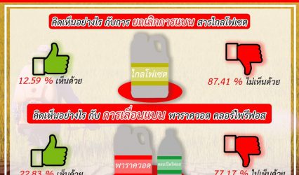 กิจกรรม สวนสุนันทาเผย ผลสำรวจประชาชน”ไม่เห็นด้วย” ยกเลิกแบน – เลื่อนแบน 3 สารพิษเจ้าปัญหา tui sakrapee December 26, 2019 มหาวิทยาลัยราชภัฏสวนสุนันทา ได้ทำการสำรวจความคิดเห็นของประชาชนเกี่ยวกับ 3 สารพิษ พาราควอต คลอร์ไพริฟอส และไกลโฟเซต โดยทำการสำรวจจากประชาชนกลุ่มตัวอย่างที่มีอายุ 18 ปีขึ้นไป ในทุกสาขาอาชีพทุกภูมิภาคของประเทศ จำนวน 1,200 คน แยกเป็นเพศชาย ร้อยละ 63.17 และหญิงร้อยละ 36 .83 ผลการสำรวจพบว่า ส่วนใหญ่ ไม่เห็นด้วยกับการยกเลิกการแบนสารไกลโฟเซต…