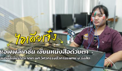 นักศึกษา ไอเดียเจ๋ง แอพพลิเคชั่น เขียนหนังสือด้วยตา ผลงานซีเนียโปรเจกต์ นศ.วิศวกรรมชีวการแพทย์ ม.รังสิต EZ Webmaster December 23, 2019 2 นักศึกษาวิทยาลัยวิศวกรรมชีวการแพทย์ มหาวิทยาลัยรังสิต สร้างแอพพลิเคชั่นเขียนหนังสือด้วยตา โดยประยุกต์ใช้คลื่นไฟฟ้าจากตา (EOG) มาใช้ในการเขียนหนังสือสำหรับคนพิการ นับเป็นผลงาน Senior Project ที่สามารถนำไปพัฒนาต่อในอนาคตและใช้งานได้จริง นางสาวสอาดา คล้อยเอี่ยม (ฟ้า) และนางสาวจารุวรรณ บูรสิทธิ์…
