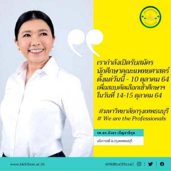 tui sakrapee October 8, 2021 ยังมีโอกาส! คณะแพทยศาสตร์ มหาวิทยาลัยกรุงเทพธนบุรี เปิดรับสมัครนักศึกษา เริ่มวันนี้ – 10 ต.ค. 2564 tui sakrapee October 8, 2021 คณะแพทยศาสตร์ มหาวิทยาลัยกรุงเทพธนบุรี ได้ผ่านการรับหลักสูตรแพทยศาสตร์บัณฑิต จากแพทยสภาอย่างเป็นทางการพร้อมเปิดรับสมัครนักศึกษาแล้ว เริ่มรับสมัครตั้งแต่วันนี้ – 10 ต.ค. 2564 สอบข้อเขียน 14 – 15 ต.ค. 2564 สอบสัมภาษณ์ 21 ต.ค. 2564 ตรวจสุขภาพร่างกาย จิตใจ 22 ต.ค. 2564 รายงานตัว และลงทะเบียน 28 ต.ค. 2564 เปิดภาคการศึกษาที่ 1 ปีการศึกษา… Continue Reading
