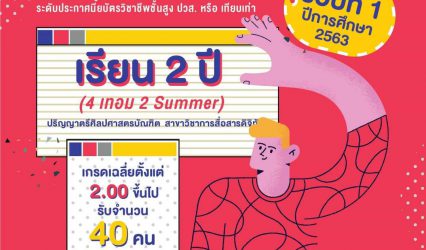 นักเรียน เปิดรับสมัคร คณะสารสนเทศและการสื่อสาร มหาวิทยาลัยแม่โจ้ EZ Webmaster December 16, 2019 เปิดรับสมัครนักศึกษา คณะสารสนเทศและการสื่อสาร หลักสูตร 4 ปีเทียบเข้าเรียน (รอบที่ 1) ปีการศึกษา 2563 สาขาวิชาการสื่อสารดิจิทัล รุ่นที่ 1 : รับผู้กำลังศึกษา/สำเร็จการศึกษาระดับประกาศนียบัตรวิชาชีพชั้นสูง ปวส. หรือ…