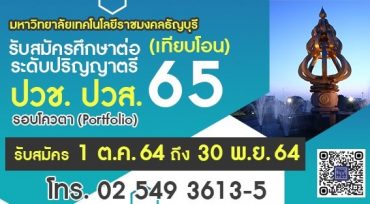 มทร.ธัญบุรีเปิดรับเรียนต่อปริญญาตรี รอบโควตา (Portfolio) ปวช. ปวส.เริ่มวันนี้ – 30 พ.ย.64 tui sakrapee October 4, 2021 มหาวิทยาลัยเทคโนโลยีราชมงคลธัญบุรี เปิดการรับสมัครสอบคัดเลือกบุคคลเข้าศึกษาระดับปริญญาตรี ปีการศึกษา 2565 โควตา (ปวช./ปวส.) กำหนดการ 1 ต.ค.–30 พ.ย. 64 รับสมัคร/ชำระเงิน/อัพโหลดเอกสาร 10 ธ.ค. 64 ประกาศรายชื่อผู้มีสิทธิ์สอบสัมภาษณ์ 18 ธ.ค. 64 สอบสัมภาษณ์ (เริ่มเวลา 09.00 น.) 25 ธ.ค. 64 ประกาศชื่อผู้มีสิทธิ์เข้าศึกษา คุณสมบัติผู้สมัคร ปวช.3 / ปวส.2 – กำลังศึกษาอยู่ภาคการศึกษาสุดท้าย ปีการศึกษา 2564 – คาดว่าจะสำเร็จการศึกษาและได้รับวุฒิการศึกษา จากสถานศึกษาทั่วประเทศ ขั้นตอนการสมัคร -ศึกษาระเบียบการรับสมัครฯ -สมัคร www.oreg.rmutt.ac.th… Continue Reading