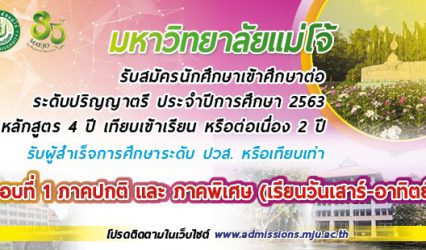 นักเรียน มหาวิทยาลัยแม่โจ้ เปิดรับสมัครนักศึกษา หลักสูตร 4 ปีเทียบเข้าเรียน หรือ ต่อเนื่อง 2 ปี (รอบที่ 1) ปีการศึกษา 2563 EZ Webmaster December 13, 2019 มหาวิทยาลัยแม่โจ้ เปิดรับสมัครนักศึกษา หลักสูตร 4 ปีเทียบเข้าเรียน หรือ ต่อเนื่อง 2 ปี (รอบที่ 1) ปีการศึกษา 2563 : รับผู้กำลังศึกษาระดับประกาศนียบัตรวิชาชีพชั้นสูง ปวส.…
