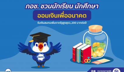 กิจกรรมนักเรียน กอช. ชวนเยาวชน ออมเงินเพื่ออนาคต รัฐใจดี! สมทบเงินเพิ่ม สูงสุด 1,200 บาทต่อปี EZ Webmaster December 14, 2019 ข่าวดี! สำหรับนักเรียน นักศึกษา ที่มีอายุตั้งแต่ 15 ปีขึ้นไป “กองทุนการออมแห่งชาติ” หรือ กอช. ชวนน้องๆ สมัครสมาชิกเพื่อสร้างความมั่นคงทางการเงินหลังอายุ 60 ปี หรือหลังเกษียณ โดยมีเงื่อนไขคือ…