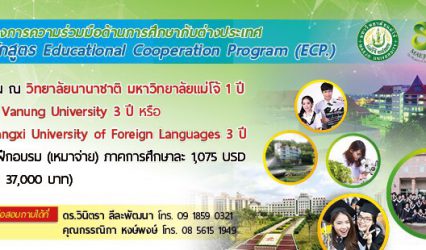 นักศึกษานักเรียน วิทยาลัยนานาชาติ มหาวิทยาลัยแม่โจ้ เปิดรับสมัครบุคคลเข้าเป็นผู้ฝึกอบรม โครงการความร่วมมือด้านการศึกษากับต่างประเทศ EZ Webmaster December 12, 2019 วิทยาลัยนานาชาติ มหาวิทยาลัยแม่โจ้ เปิดรับสมัครบุคคลเข้าเป็นผู้ฝึกอบรม โครงการความร่วมมือด้านการศึกษากับต่างประเทศ หลักสูตร Educational Cooperation Program (ECP.) * เรียน ณ วิทยาลัยนานาชาติ มหาวิทยาลัยแม่โจ้ 1 ปี…