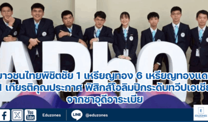 นักเรียน เยาวชนไทยพิชิตชัย 1 เหรียญทอง 6 เหรียญทองแดง 1 เกียรติคุณประกาศ ฟิสิกส์โอลิมปิกระดับทวีปเอเชีย จากซาอุดีอาระเบีย EZ Webmaster May 14, 2025 รองศาสตราจารย์ ดร.ธีระเดช เจียรสุขสกุล ผู้อำนวยการสถาบันส่งเสริมการสอนวิทยาศาสตร์และเทคโนโลยี (สสวท.) เปิดเผยว่าตามที่ได้จัดส่งผู้แทนประเทศไทยเข้าร่วมการแข่งขันฟิสิกส์โอลิมปิกระดับทวีปเอเชีย ครั้งที่ 25 ประจำปี พ.ศ. 2568 (25th APhO 2025) ระหว่างวันที่ 4 – 12 พฤษภาคม 2568…