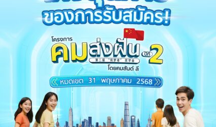 Blogทุนดีดี โค้งสุดท้าย! โครงการ “คมส่งฝัน” เปิดรับสมัครทุนเรียนต่อจีน ถึง 31 พ.ค. 2568 นี้เท่านั้น tui sakrapee May 14, 2025 โครงการ “คมส่งฝัน” เปิดรับสมัครเยาวชนไทยเพื่อชิงทุนการศึกษาระดับปริญญาตรี ณ สาธารณรัฐประชาชนจีน ประจำปีการศึกษา 2568 โดยในปีนี้ถือเป็นปีแรกที่โครงการได้ขยายโอกาสการศึกษาสู่ระดับนานาชาติ ด้วยการมอบทุนเต็มจำนวนจำนวน 10 ทุน รวมมูลค่ากว่า 10 ล้านบาท เพื่อศึกษาต่อในสองเมืองสำคัญของจีน…
