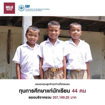 มูลนิธิ EDF รับมอบเงินจากมูจิ (MUJI) เพื่อเป็นทุนการศึกษาให้นักเรียนยากจน EZ Webmaster September 27, 2021 เนื่องจากสถานการณ์การระบาดของโรคโควิด-19 ปัจจุบันนักเรียนทั่วประเทศส่วนใหญ่ยังคงเรียนออนไลน์ อาจเรียนจากเอกสารใบงาน แบบฝึกหัดที่คุณครูนำไปส่งให้ที่บ้านหรือผู้ปกครองไปรับที่โรงเรียนหากที่บ้านไม่มีอินเทอร์เน็ท หรือไม่มีอุปกรณ์สื่อสารที่สามารถเชื่อมต่อสัญญาณอินเทอร์เน็ทได้ และมีนักเรียนจำนวนไม่น้อยที่ต้องเลิกเรียนกลางคันเนื่องจากจากสภาพความเป็นอยู่ของครอบครัวและปัญหาทางด้านการเงิน มูลนิธิ EDF (มูลนิธิกองทุนการศึกษาเพื่อการพัฒนา) ยังคงเดินหน้าระดมทุนการศึกษา รวมถึงดำเนินงานร่วมกับพาร์ทเนอร์องค์กรต่าง ๆ จัดกิจกรรมพัฒนาศักยภาพของนักเรียน ล่าสุดรับมอบเงิน 257,169.25 บาท (สองแสนห้าหมื่นเจ็ดพันหนึ่งร้อยหกสิบเก้าบาทยี่สิบห้าสตางค์) จากร้านมูจิ (MUJI) ในประเทศไทย เพื่อจัดสรรเป็นทุนการศึกษาให้นักเรียนชั้นมัธยมศึกษาตอนต้นที่ยากจน 44 คน ในปีการศึกษา 2564 นายสรรเพชร นิลรัตน์ กรรมการผู้จัดการมูลนิธิ EDF กล่าวว่า “มูลนิธิ EDF ขอขอบคุณลูกค้าร้านมูจิ (MUJI) ในประเทศไทยทุกคนที่ได้มีส่วนร่วมบริจาคเงินในกล่องรับบริจาคของมูลนิธิที่ตั้งอยู่ในร้านมูจิ (MUJI) ทั้ง 23 สาขา ระหว่าง 1 กรกฎาคม… Continue Reading