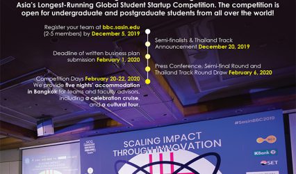 กิจกรรม ขอเชิญนิสิต นักศึกษา เข้าร่วมการแข่งขันสร้างแผนธุรกิจสตาร์ทอัพระดับโลก “SCG Bangkok Business Challenge at Sasin 2020” สมัครด่วนภายใน 5 ธันวาคม นี้ EZ Webmaster November 20, 2019 เอสซีจี และ สถาบันบัณฑิตบริหารธุรกิจ ศศินทร์ แห่งจุฬาลงกรณ์มหาวิทยาลัย (Sasin School of Management) ขอเชิญนิสิต นักศึกษา ระดับปริญญาตรีและโท เข้าร่วม “SCG Bangkok Business…