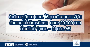 EZ Webmaster November 13, 2021 สำนักการศึกษา กทม. ให้ทุนสนับสนุนการวิจัยด้านเทคโนโลยีการศึกษา ทุนละ 30,000 บาท ตั้งแต่วันที่ 1 พ.ย. – 21 ม.ค. 65 EZ Webmaster November 13, 2021 สำนักการศึกษา กรุงเทพมหานคร จะดำเนินการจัดสรรทุนสนับสนุนการวิจัยด้านเทคโนโลยีการศึกษา ประจำปีงบประมาณ พ.ศ. 2565 จำนวน 10 ทุน ทุนละ 30,000 บาท โดยมีจุดประสงค์เพื่อส่งเสริมและสนับสนุนให้มีการทำวิจัยด้านเทคโนโลยีการศึกษา โดยมีรายละเอียดต่างๆ ดังนี้ กำหนดการ -สมัครยื่นขอรับทุนได้ตั้งแต่วันที่ 1 พฤศจิกายน 2564 – 21 มกราคม 2565 ผู้มีสิทธิ์ขอรับทุนสนับสนุน -นิสิต นักศึกษา ระดับปริญญาโทและปริญญาเอก สถาบันการศึกษาในต่างประเทศ -ข้าราชการกรุงเทพมหานคร… Continue Reading