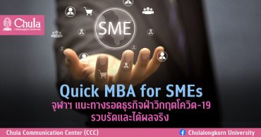 tui sakrapee September 1, 2021 Quick MBA for SMEs จุฬาฯ แนะทางรอดธุรกิจฝ่าวิกฤตโควิด-19 รวบรัดและได้ผลจริง tui sakrapee September 1, 2021 สำเร็จด้วยดีกับ Quick MBA for SMEs โครงการสร้างสรรค์เพื่อสังคมจากจุฬาฯ เสิร์ฟความรู้ถึงบ้านให้ผู้ประกอบการSMEs 4 ประเภทธุรกิจ “อาหาร โรงแรมและที่พัก สุขภาพ และแฟชั่น” ปรับตัวและอยู่รอดในวิกฤตโรคโควิด-19 รับชมรับฟังย้อนหลังเพื่อเสริมพลังธุรกิจได้แล้ววันนี้ วิกฤตโรคโควิด-19 ที่อยู่กับเรามาตั้งแต่ปีที่แล้วต่อเนื่องถึงปัจจุบัน ส่งผลกระทบต่อทุกชีวิตถ้วนหน้า โดยเฉพาะอย่างยิ่งภาคธุรกิจ เช่น ธุรกิจขนาดกลางและขนาดย่อม (SMEs) ซึ่งมีมากกว่า 90% ของธุรกิจ ในบ้านเราได้รับผลกระทบค่อนข้างรุนแรง หลายรายต้องปิดตัวลงเนื่องจากประสบภาวะขาดทุน ไม่อาจแบกรับค่าใช้จ่ายได้ แต่ในวิกฤตย่อมมีโอกาส เจ้าของธุรกิจจำนวนไม่น้อยเริ่มปรับตัวและประคับประคองธุรกิจให้อยู่รอด และอยู่ดี ท่ามกลางความผันผวนของสถานการณ์… Continue Reading