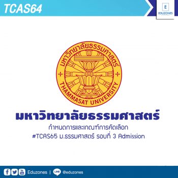 เช็ก! กำหนดการและเกณฑ์การคัดเลือก #TCAS65 ม.ธรรมศาสตร์ รอบที่ 3 Admission EZ Webmaster August 27, 2021 มหาวิทยาลัยธรรมศาสตร์ เผยเกณฑ์การรับสมัครคัดเลือกบุคคลเพื่อเข้าศึกษาต่อในระดับปริญญาตรี รอบที่ 3 Admission ประจำปีการศึกษา 2565 โดยมีรายละเอียด ดังนี้ คณะที่เปิดรับสมัคร -คณะนิติศาสตร์ -คณะพาณิชยศาสตร์และการบัญชี -คณะรัฐศาสตร์ -คณะเศรษฐศาสตร์ -คณะสังคมสงเคราะห์ศาสตร์ -คณะศิลปศาสตร์ -คณะวารสารศาสตร์และสื่อสารมวลชน -คณะสังคมวิทยาและมานุษยวิทยา -คณะวิทยาศาสตร์และเทคโนโลยี -คณะวิศวกรรมศาสตร์ -คณะแพทยศาสตร์ -คณะสหเวชศาสตร์ -คณะพยาบาลศาสตร์ -คณะศิลปกรรมศาสตร์ -คณะสถาปัตยกรรมศาสตร์และการผังเมือง -คณะสาธารณสุขศาสตร์ -คณะเภสัชศาสตร์ -คณะวิทยาการเรียนรู้และศึกษาศาสตร์ -สถาบันเทคโนโลยีนานาชาติสิรินธร -วิทยาลัยนวัตกรรม -วิทยาลัยสหวิทยาการ -วิทยาลัยนานาชาติปรีดี พนมยงค์ -วิทยาลัยแพทยศาสตร์นานาชาติจุฬาภรณ์ -วิทยาลัยพัฒนศาสตร์ป๋วย อึ๊งภากรณ์ -โครงการ Thammasat Frontier School… Continue Reading