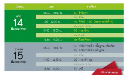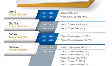 ข่าวเด่นนักเรียน ตารางสอบและรายละเอียดกำหนดการสอบ GAT/PAT ปีการศึกษา 2563 EZ Webmaster October 11, 2019 รายละเอียดการสมัคร >> คลิก